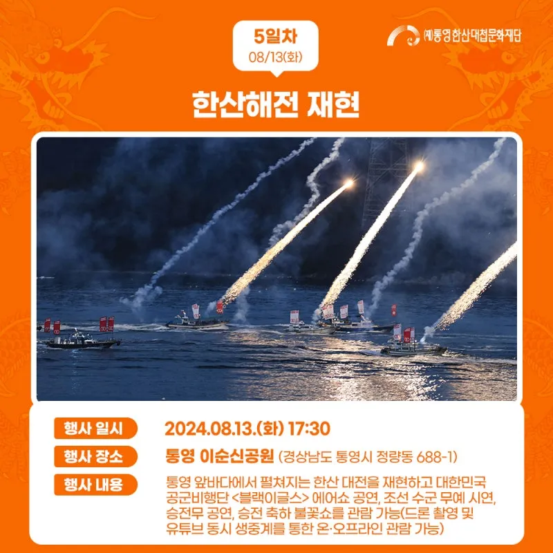 제63회 통영한산대첩축제 8.13.(화) 5일차 행사 미리보기