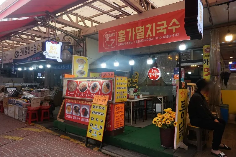 계산시장 B동 입구 근처에 있는 '홍가 멸치국수'라는 국숫집입니다.