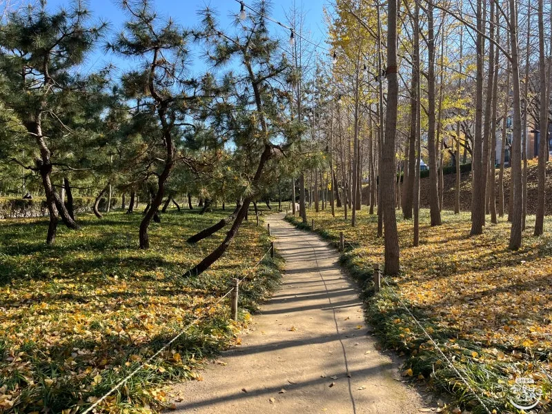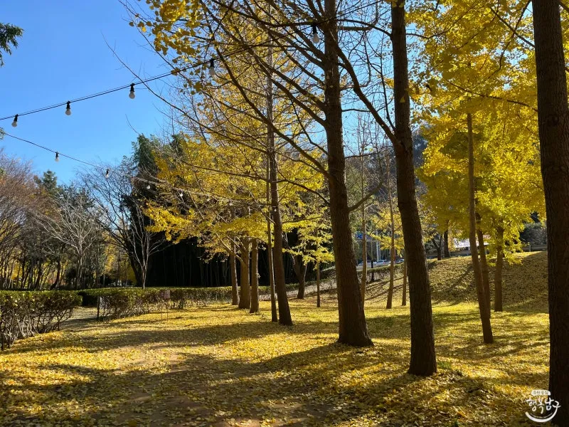 가을이 끝이 났다는 것이 맨발걷기 길에서도 알 수 있네요. 황톳길 위에 떨어진 노란 은행잎이 꽤나 감성적입니다.