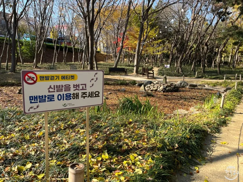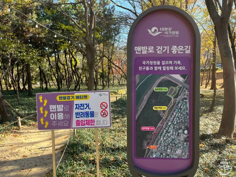 맨발걷기 에티켓이 있습니다. 신발을 신고 가는 것이 아니라 맨발로 이용하고요. 자전거, 반려동물은 출입할 수 없습니다.
