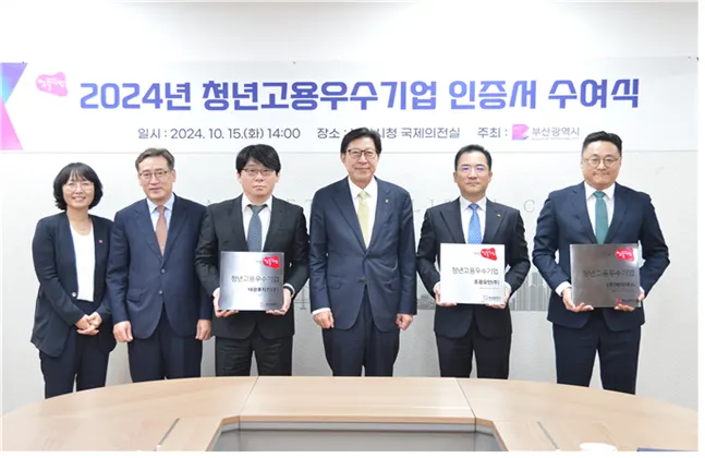 부산시, 2025년 청년고용우수기업 5개사 선정!