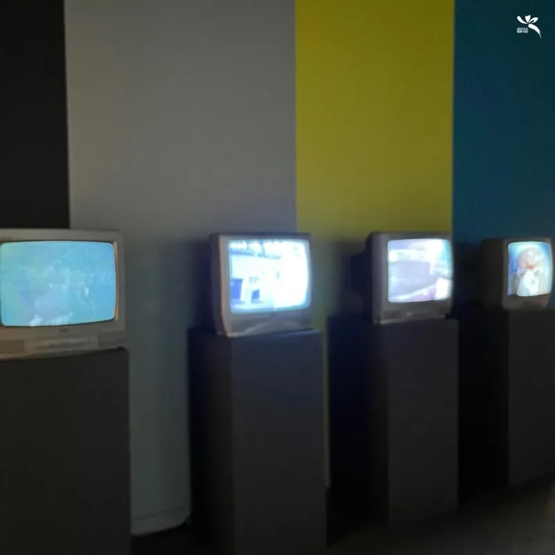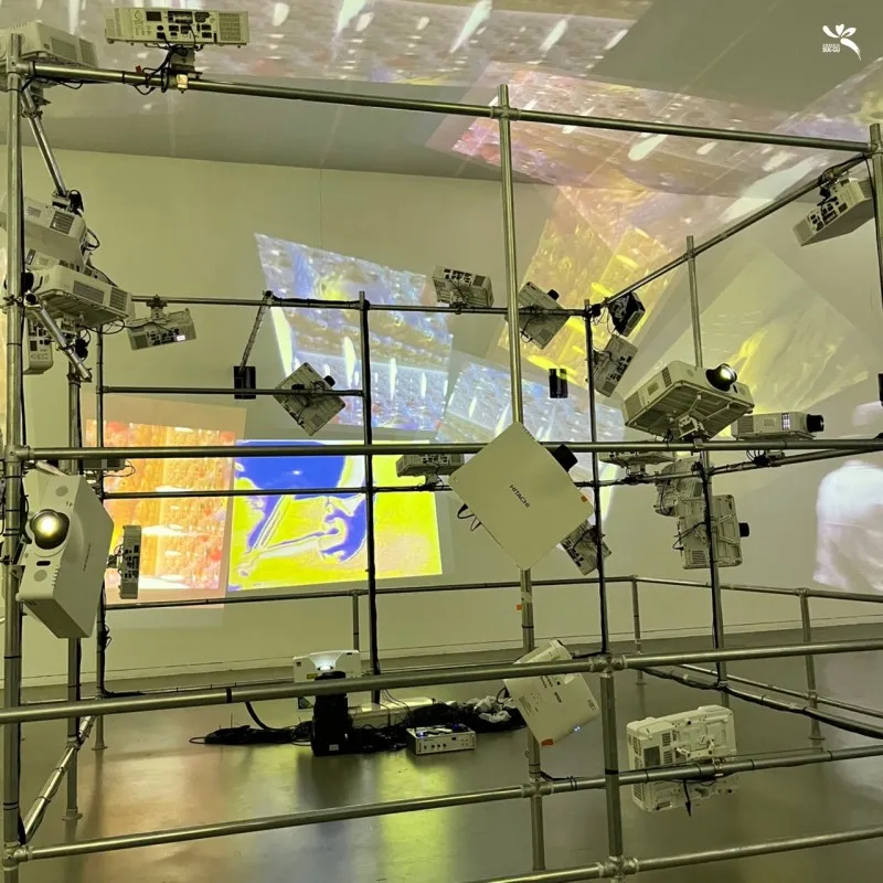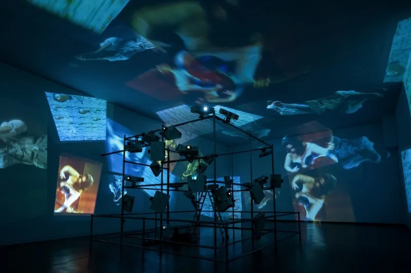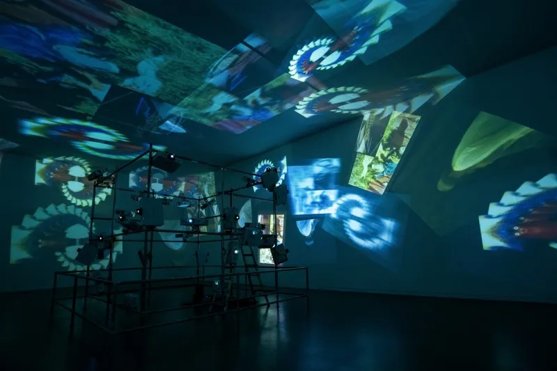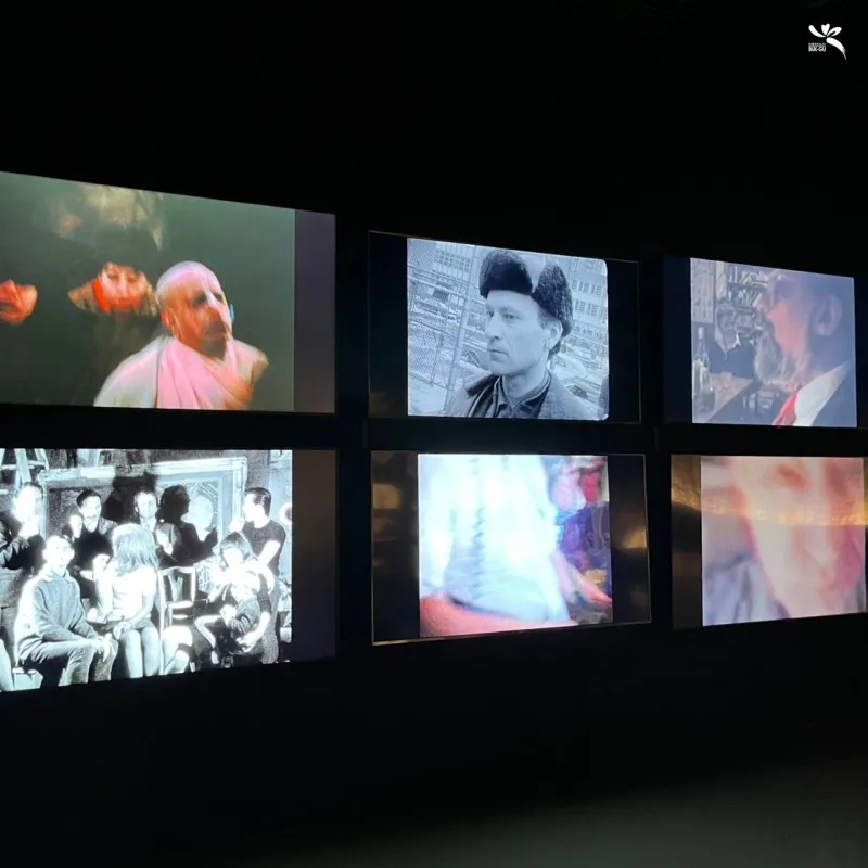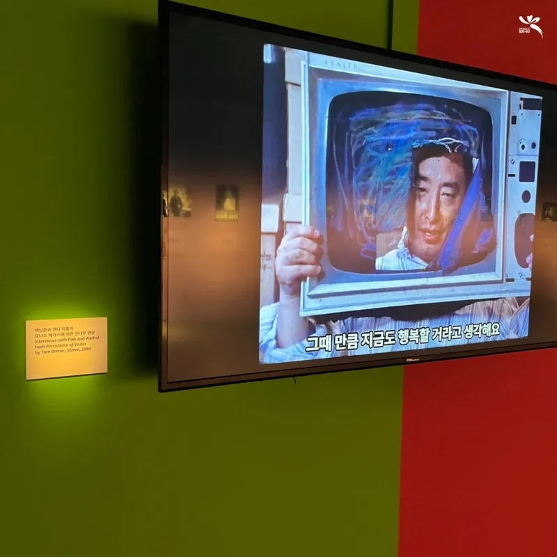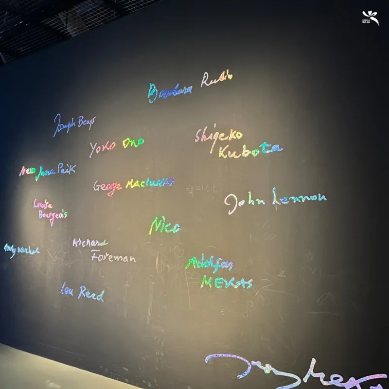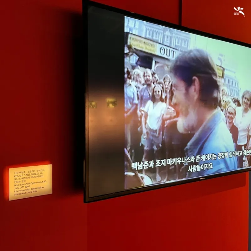 플럭서스 예술가들의 이미지가 투사되는 백남준의