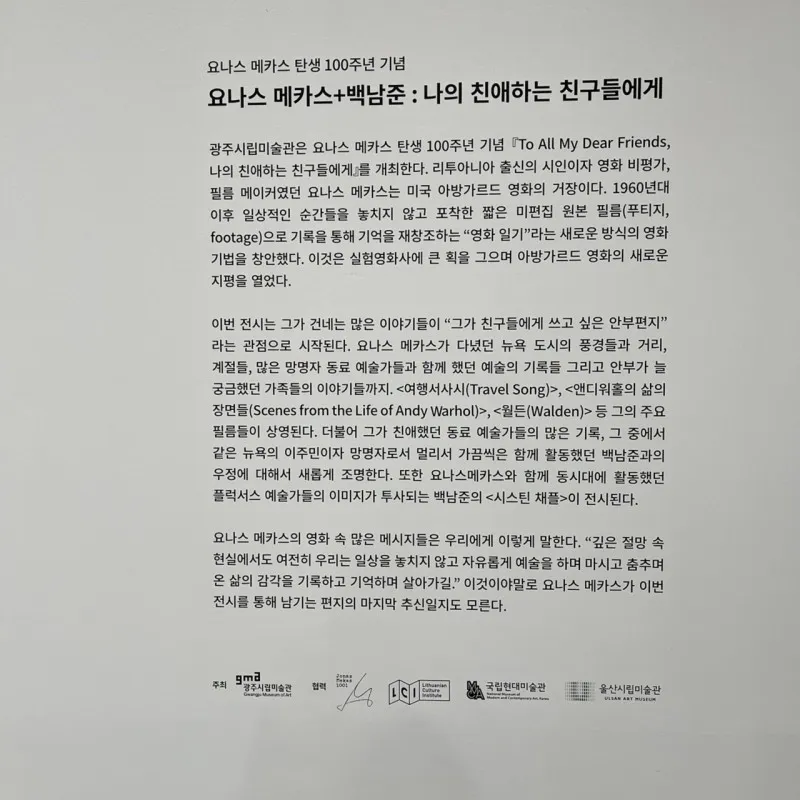 광주시립미술관, 요나스 메카스+백남준 : 나의 친애하는 친구들에게