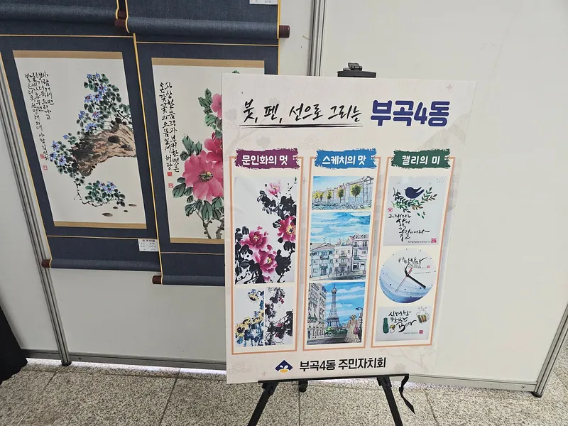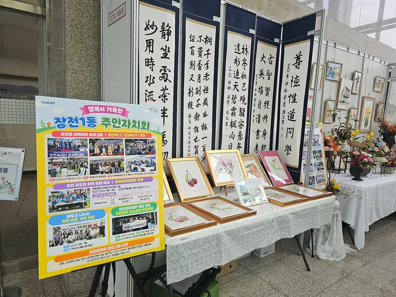 작품 전시는 지난 10월 17일 금요일부터 10월 24일 금요일까지 1주일 동안 금정구청 구민홀 1층과 2층에서 진행되었답니다. 2025년 동안 금정구 주민자치 프로그램의 작품들을 구경할 수 있었는데, 지역 주민들의 재능과 열정을 볼 수 있었던 자리였답니다.