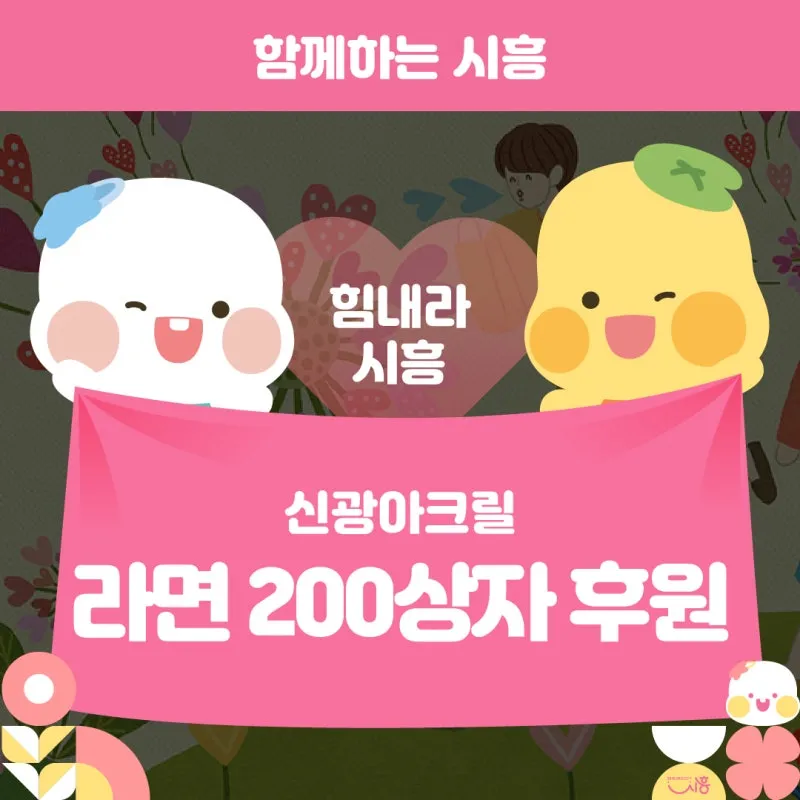 시흥시 정왕본동 행정복지센터는 지난 9월 25일 신광아크릴이 추석을 맞아 지역 내 취약계층 어르신들을 위해 라면 200상자를 기탁했다고 밝혔습니다.