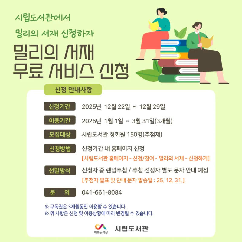 시립도서관 ‘밀리의 서재’ 무료 서비스 신청 안내