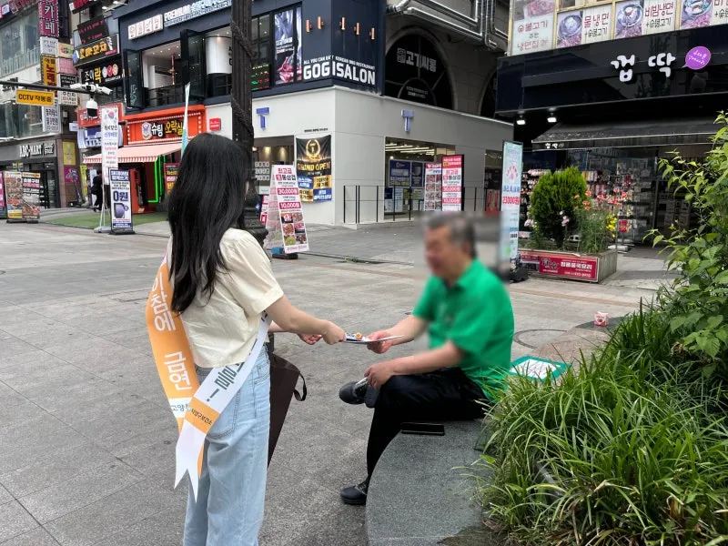 두 번째로 청정 금연 플로깅 캠페인을 진행했습니다. 자원봉사자들이 화정역 주변 거리를 돌아다니며 담배꽁초를 줍고 금연 캠페인을 시민들에게 알리는 행사였습니다.