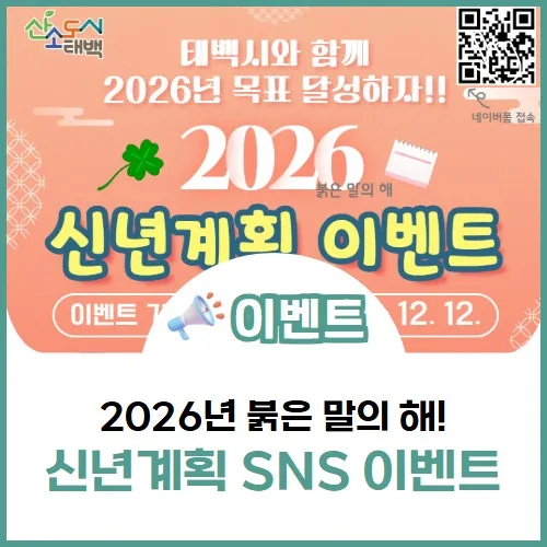 {"title":"태백시 2026 신년계획 SNS 이벤트","source":"https://blog.naver.com/taebaek_city/224099490984","blogName":"태백시","domainIdOrBlogId":"taebaek_city","nicknameOrBlogId":"태백시","logNo":224099490984,"smartEditorVersion":4,"lineDisplay":true,"meDisplay":true,"blogDisplay":true,"cafeDisplay":true,"outsideDisplay":false}