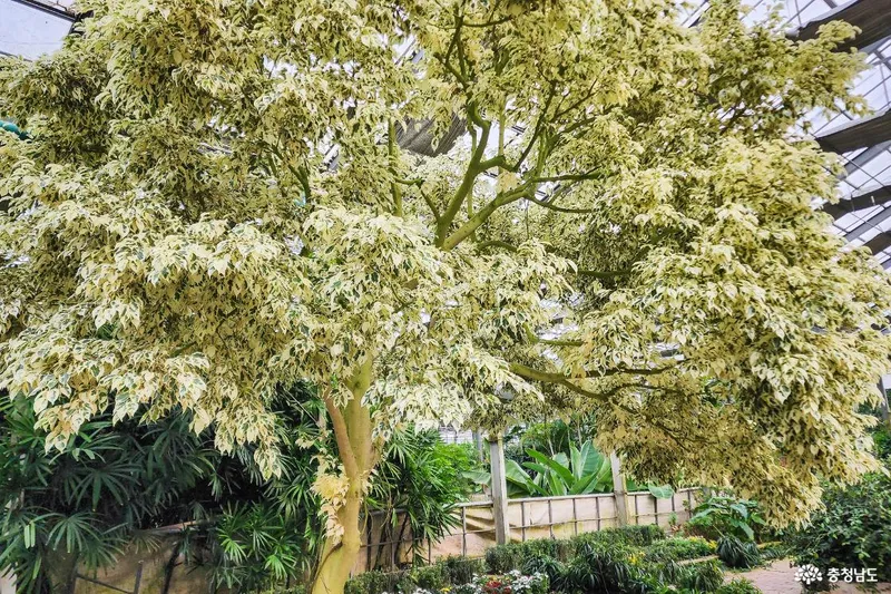 아산세계꽃식물원에서 제가 좋아하는 나무 중 하나인 무늬벤자민 고무나무에요.