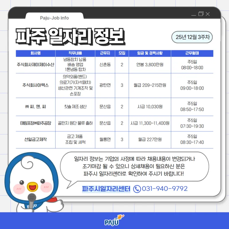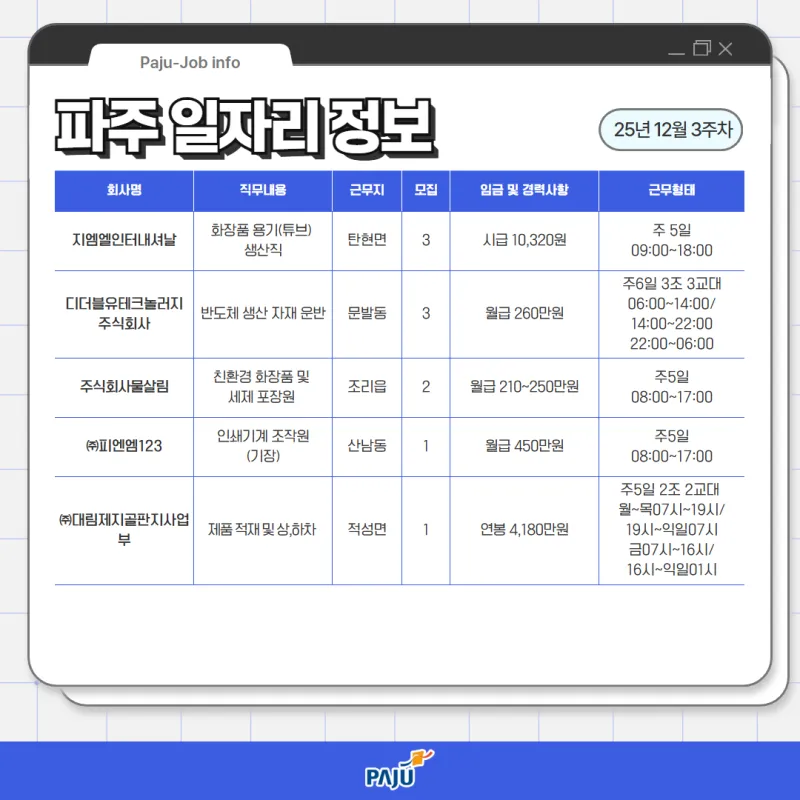 12월 3주차 파주시 취업정보