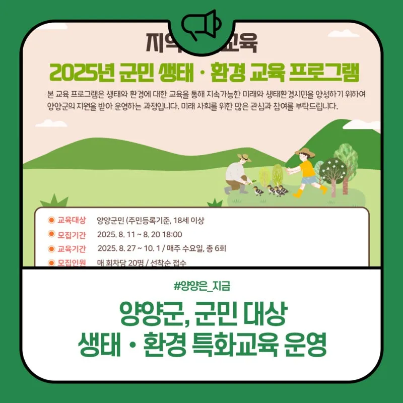 양양군, 군민 대상 생태·환경 특화교육 운영