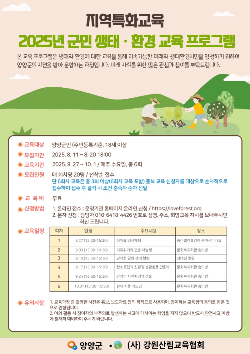 8월 20일까지 '2025년 군민 생태·환경 교육프로그램' 참가자 모집