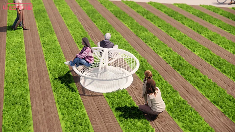 소형 모델은 어릴 적 놀이터에 있던 회전무대(일명 ‘뺑뺑이’)에 착안, 활동적인 재미를 더했다. 이용자들이 보다 즐겁고 능동적인 휴식을 경험할 수 있을 것으로 기대된다.
