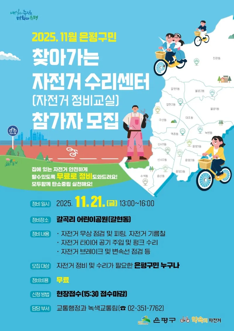 11월 은평구 찾아가는 자전거 수리센터(자전거 정비교실) 모집 "무상점검, 펑크 수리 등"