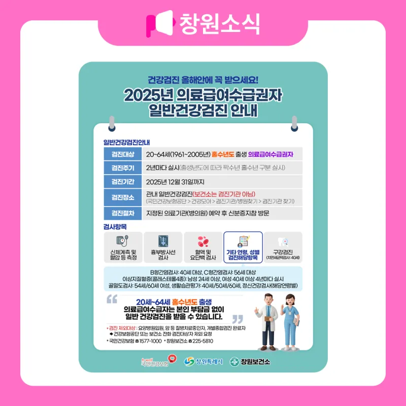 #창원특례시 #의료급여수급자 #건강검진 #무료검진 #건강관리