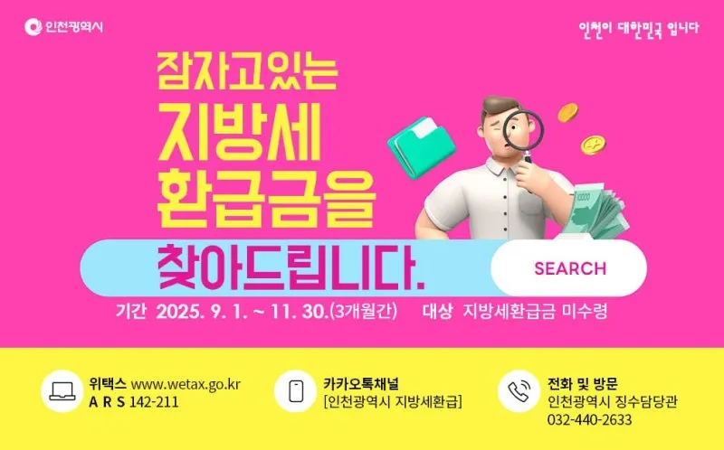 지방세 환급받는 방법! 2025 인천시 하반기 미환급금 일제정리 기간 운영 안내