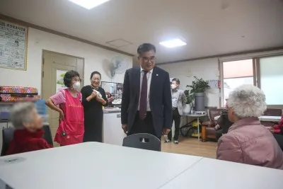 김기웅 서천군수가 지난 6일과 9일 관내 노인복지시설 10개소를 방문해 관계자들을 격려하고 소통의 시간을 가졌다.