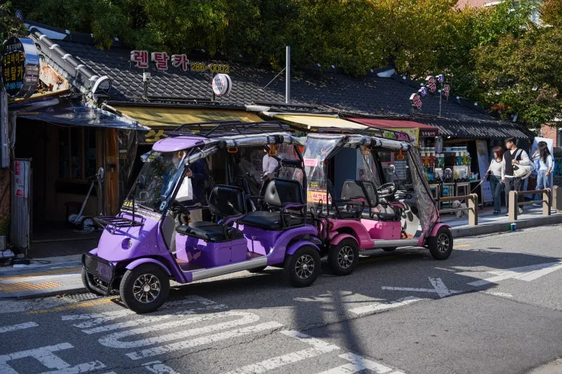 4인이 탑승할 수 있는 전동차량 역시 대여해서 전주한옥마을 주변을 둘러볼 수 있습니다. 개인적으로 빌려 한 번쯤 체험해 보고 싶었는데 저 홀로 한옥마을을 찾았기에 아쉽지만, 다음을 기약하기로 합니다.