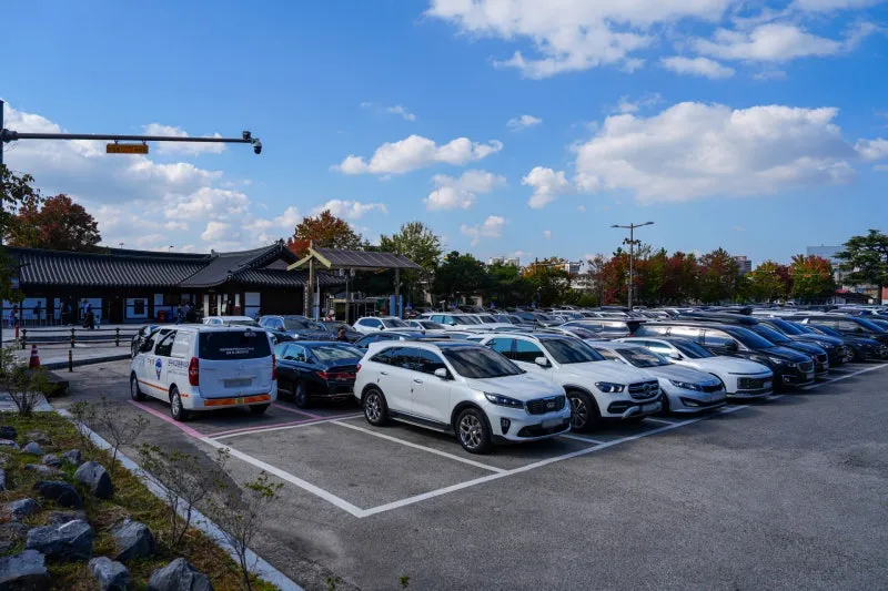 전주한옥마을 주차장은, 특히 가을철 절정이 되면 주차가 매우 힘들 정도로 주차난에 빠집니다. 한옥마을과 수 킬로미터 떨어진 증설 주차장으로 안내 후 셔틀버스를 타고 오는 방법이 있지만 저는 조금 여유롭게 차량 행렬에 줄을 서서 기다려보기로 했습니다.