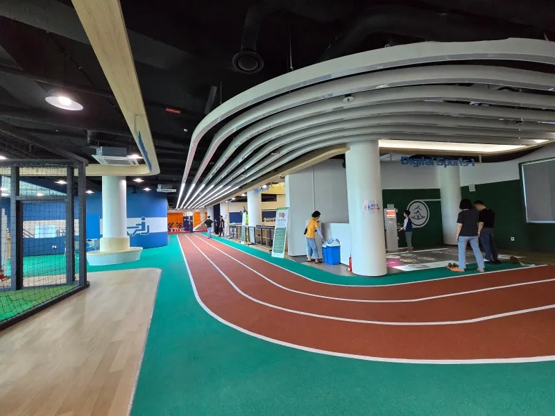 콩이관 1층은 챔피언 스포츠 파크로 디지털 스포츠게임부터 클라이밍, 퀵 점프, 권총사격, 드론축구 등 모험력이 쑥쑥 커지는 실내 대형 놀이터입니다. 회차별 이용시간은 55분으로 아이들은 물론 어른도 체험할 수 있는데요, 모두가 즐거운 놀이를 위해서 키 제한 (120cm이상)이 있다는 것 참고하세요.
