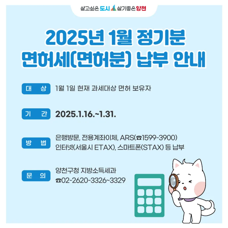 2025년 1월 정기분 면허세(면허분) 납부 안내