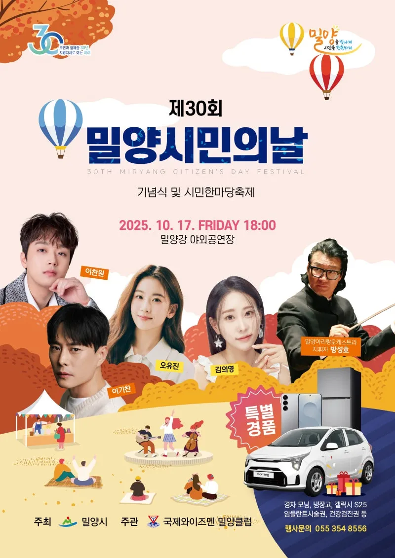 #밀양시 #시민축제 #밀양강야외공연장 #밀양아리랑 #시민대상 #열린음악회 #이찬원 #이기찬