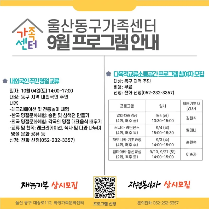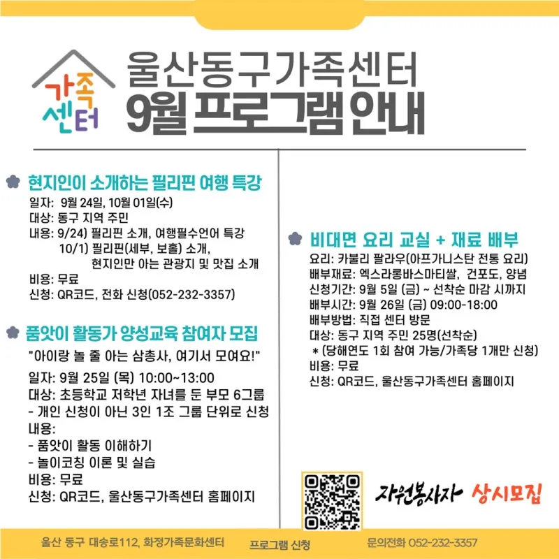 울산동구가족센터 9월 프로그램 안내