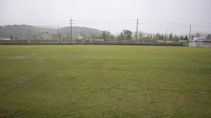 사실 이날은 경남의 사회인 한마음 체육대회가 있던 날이라 함께 취재를 하려고 했는데, 비 소식으로 장소가 옮겨지고 아쉽지만 주인 없는 골대와 천연 잔디를 보게 되네요.