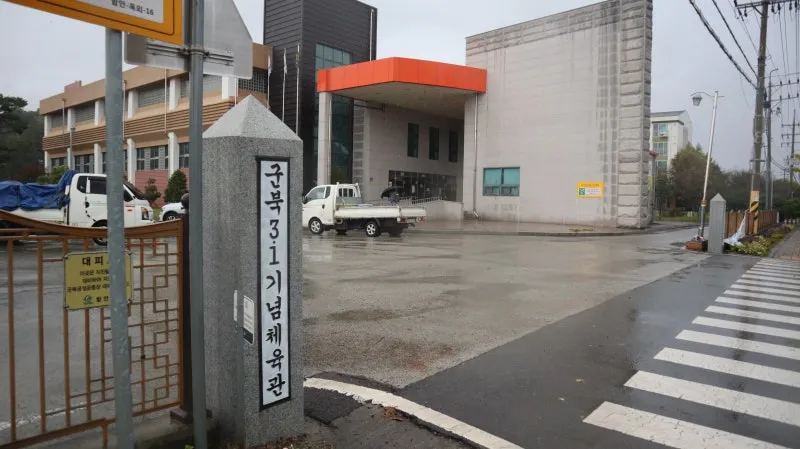 가을비가 세차게 내리는 함안군 군북면 39사단 삼거리 왼편에 있는 <군북3.1기념체육관> 바로 옆에는 넓은 운동장이 자리하고 있습니다.