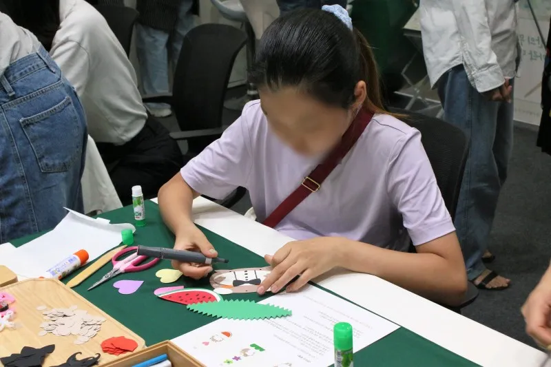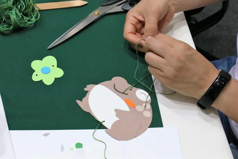 뚜비 모빌 만들기가 한창인 옆 테이블에서는