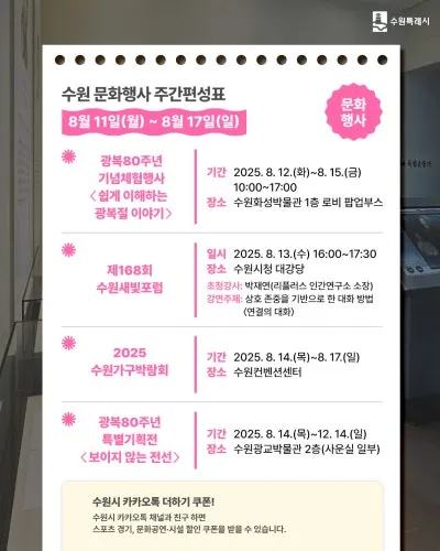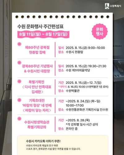 [2025년 8월 둘째 주] 이번 주 수원 스포츠 경기 & 문화 행사 일정 안내