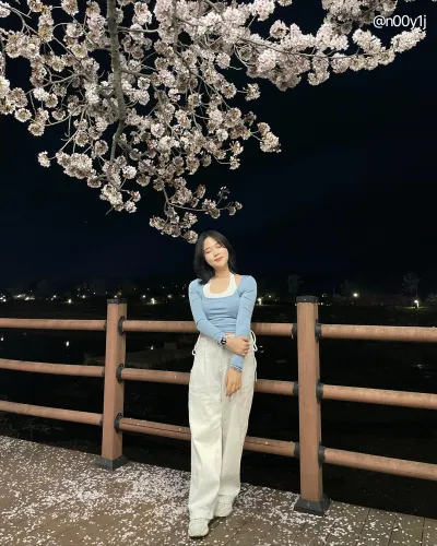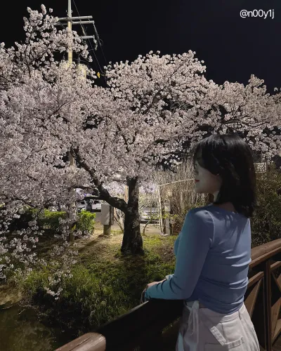밤에 산책을 즐기며 벚꽃을 구경하면