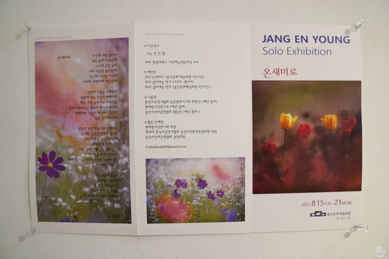 오늘은 울산 남구 전시회 추천 장은영 작가의 온새미로 사진전과, 2023 올해의 작가로 선정된 이윤빈 작가의 개인전을 감상한 후기와 함께 전시회 정보를 소개하는 시간을 갖도록 하겠습니다.