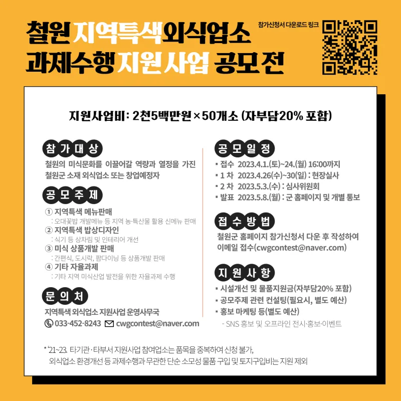 [공모전] 철원 지역특색 외식업소 과제수행 지원사