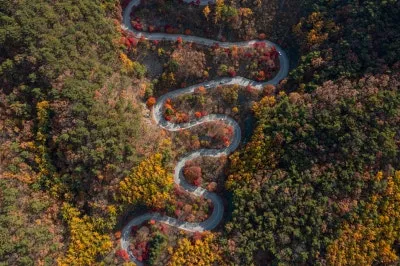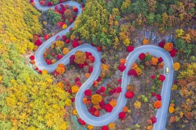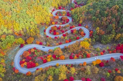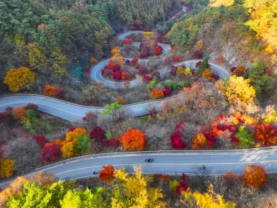굽이굽이 도로를 따라 자란 단풍이 오색빛으로 물든 장관이 펼쳐지는 곳으로