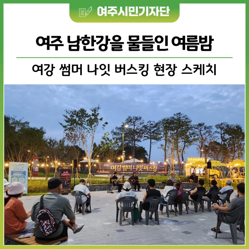 여주 남한강 출렁다리 인근 강변에 작은 음악회가 열렸다. 무대 장치나 화려한 조명은 없었지만, 강바람과 사람들의 웃음소리 속에 펼쳐진 ‘여강 썸머 나잇 버스킹’은 그 자체로 한여름밤의 선물이었다.