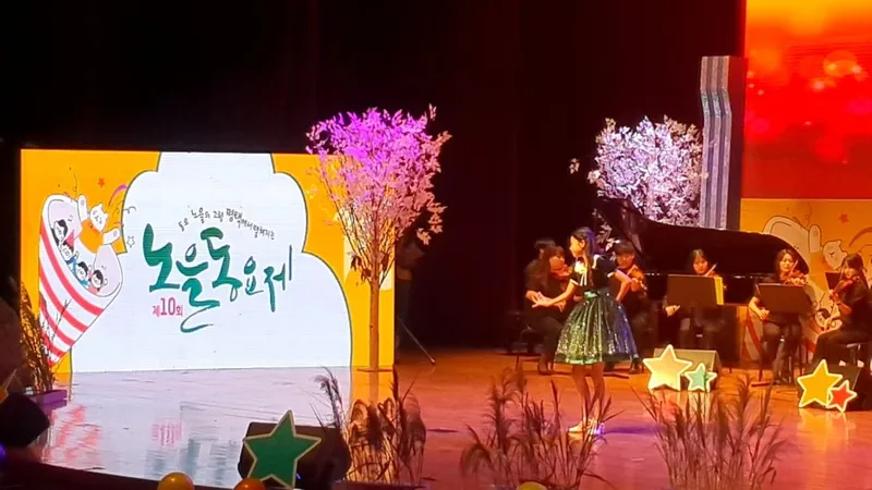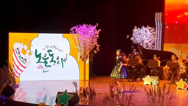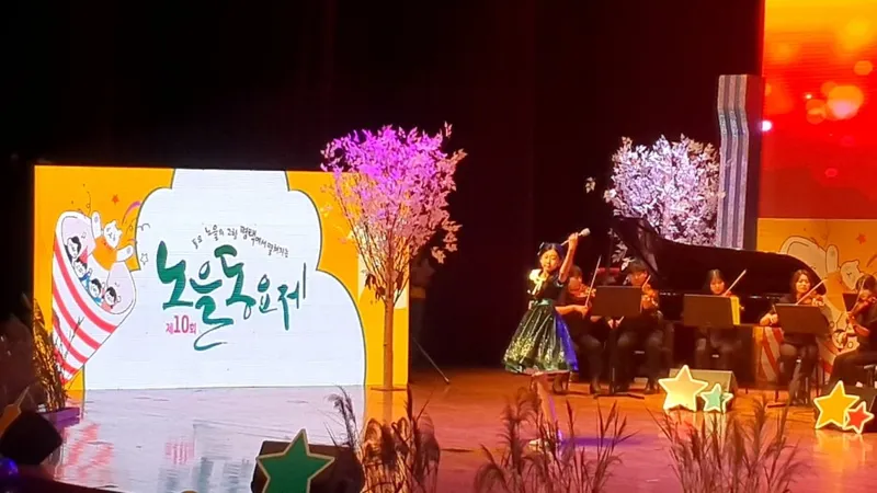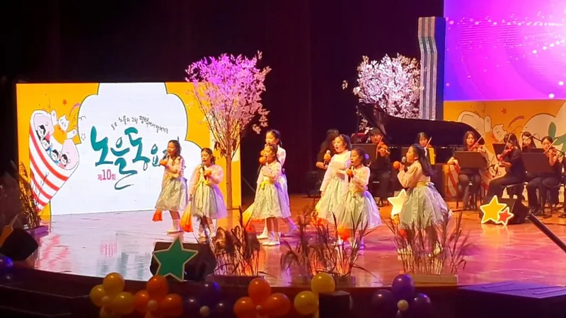 공연이 시작되었습니다. 이번 제10회 노을동요제 같은 경우에는 양악뿐 만 아니라 국악을 접목한 동요를 볼 수 있었습니다. 요즘에는 많은 아이들이 동요를 멀리하고, 가요를 듣는다고 알려져 있는데 참가자들의 수준 높은 노래 실력
