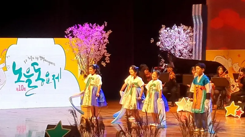 요즘 평택 들녘을 바라보면 황금색으로 물들어 가는 것을 보면 알 수 있듯이 가을이 어느새 눈앞에 와 있습니다. 이런 높고 맑은 가을 하늘은 마치 아이들이 부르는 동요와 닮아 있는 것 같습니다. 이런 의미에서 평택에서 10번째 노을동요제가 지난 9월 9일 오후 3시 평택시남부문화예술회관 대공연장에서 열렸습니다.