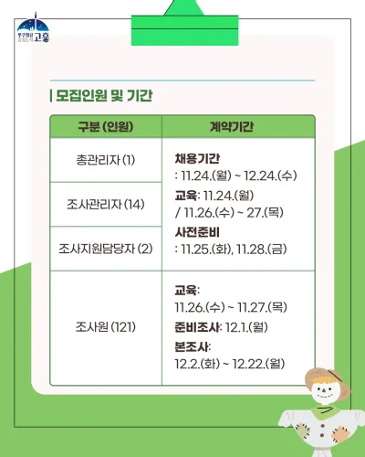 고흥군에서는 이번 조사를 함께 진행할 조사요원을 모집하고 있습니다! 🙋♀️🙋♂️