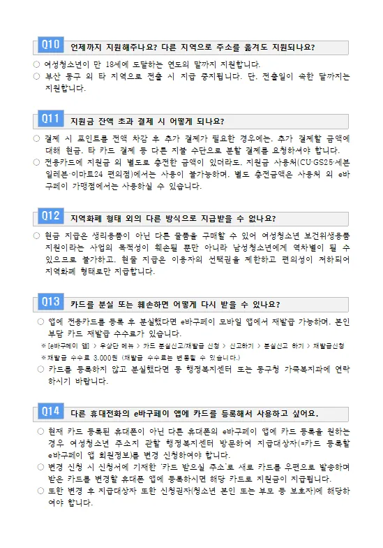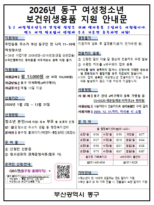 ✅ 지원대상: 부산 동구 주민등록 주소가 있는 11세~18세 여성청소년