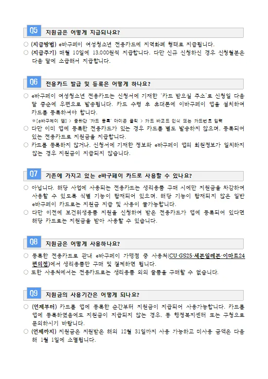 📌 중복지원 불가: 성평등가족부 생리용품 바우처와는 중복지원이 안 됩니다!