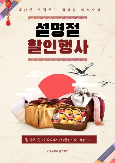 예산 예당호 휴게소 안 로컬푸드 직매장에서 열리는 이번 설맞이 특판 행사,