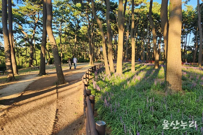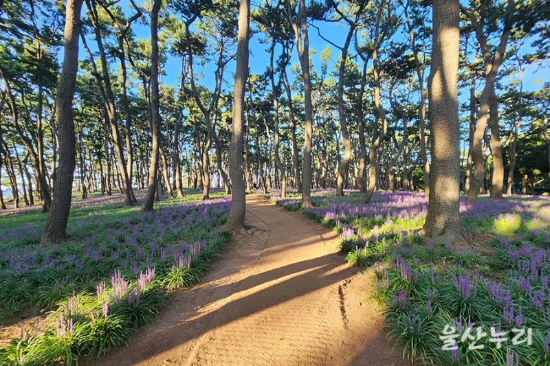 대왕암공원 입구부터 끝없이 이어지는 보랏빛으로 물든 맥문동 꽃밭을 구경할 수 있습니다.