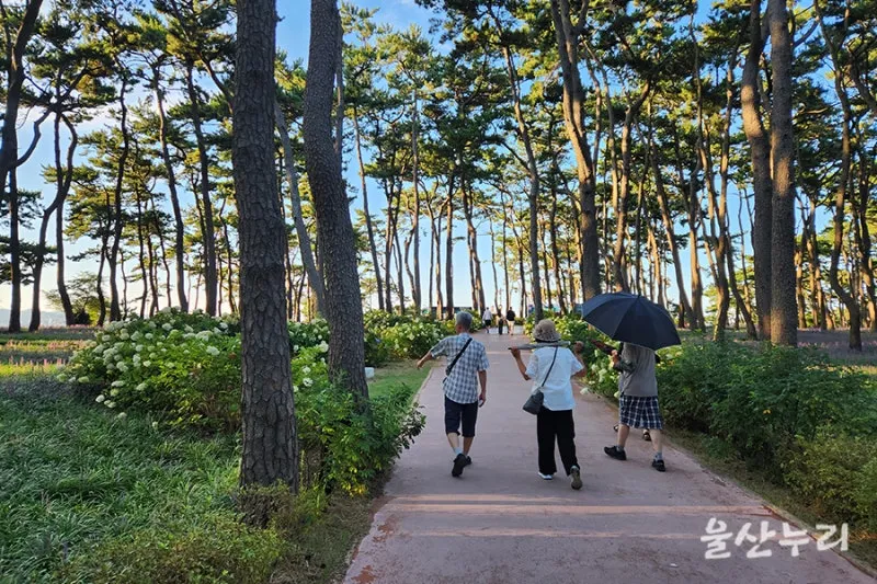 뜨거운 열기 속에 1만 5,000그루의 해송 소나무 숲 그늘을 따라 시원하게 산책하기 좋은 명소가 울산 동구에 있습니다.