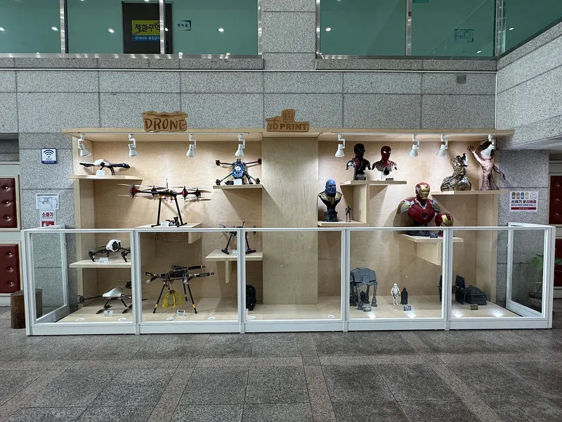 내부 1층에는 드론과 3D프린터로 만들어진 멋진 작품들을 보실 수 있습니다.