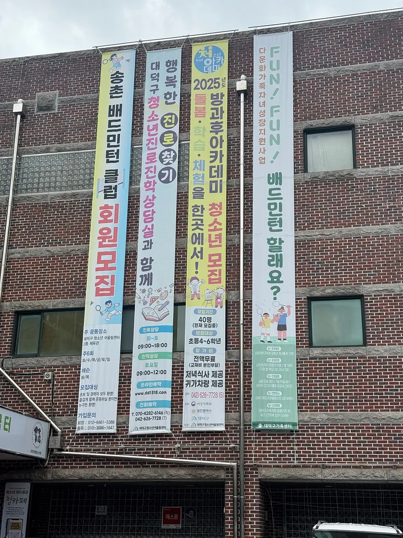 또한, 어울림센터에서는 송촌 배드민턴 클럽 모임, 대덕구 청소년들을 위한 진로상담, 방과 후 돌봄, 학습, 체험 등을 한곳에서 할 수 있는 방과 후 아카데미 등 너무 좋은 프로그램들을 진행하고 있습니다.