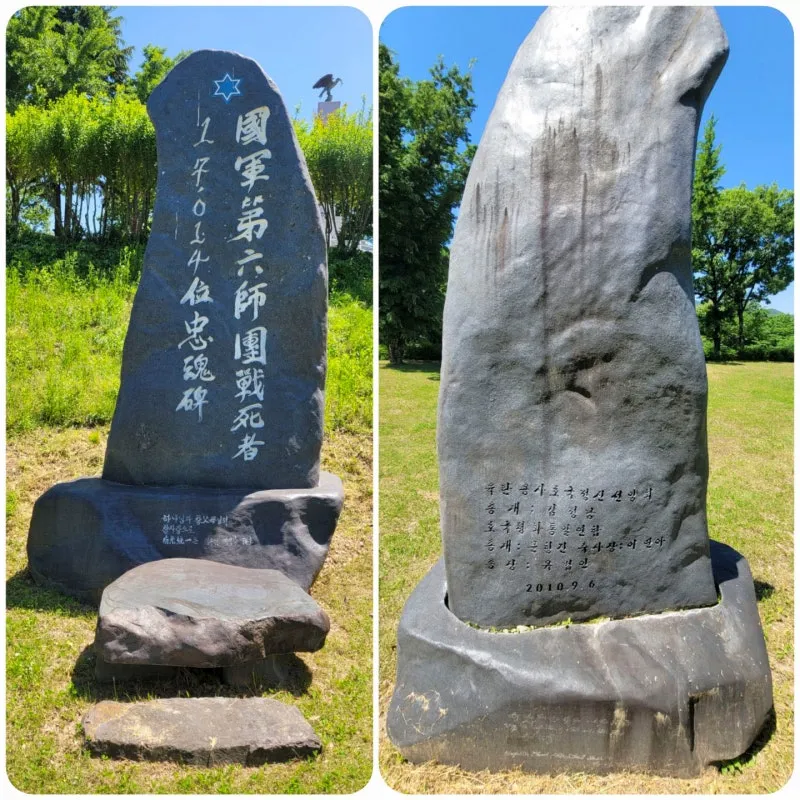 “ 애국지사 추모비” 옆에는 “국군 제6사단 전사자 충혼비”가 있습니다.