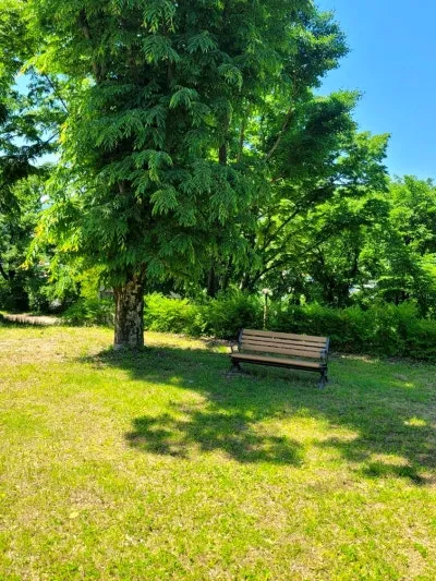 추모비 옆에는 나무벤치가 있어 시원한 나무 그늘 아래 휴식을 즐길 수 있지요.