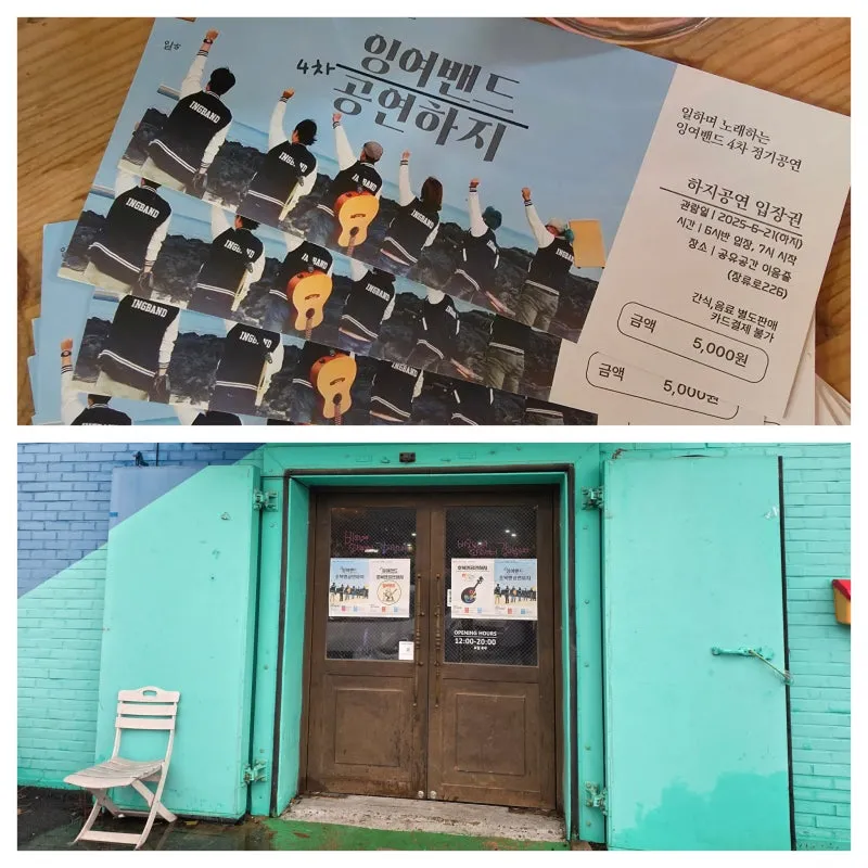 이날 공연의 하이라이트는 잉밴의 자작곡이 처음으로 공개된 순간이었습니다. 외줄 타기를 보여주셨던 남기헌 님이 직접 작사한 <남는 사람>이라는 곡이었는데요,