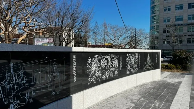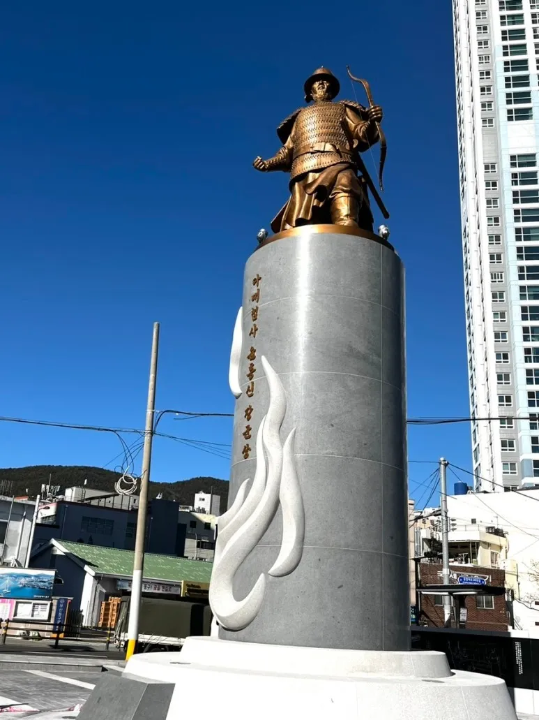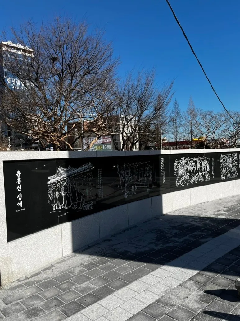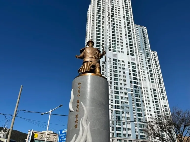 장군 일대기를 기록한 아트월과 함께 건립하였으니
